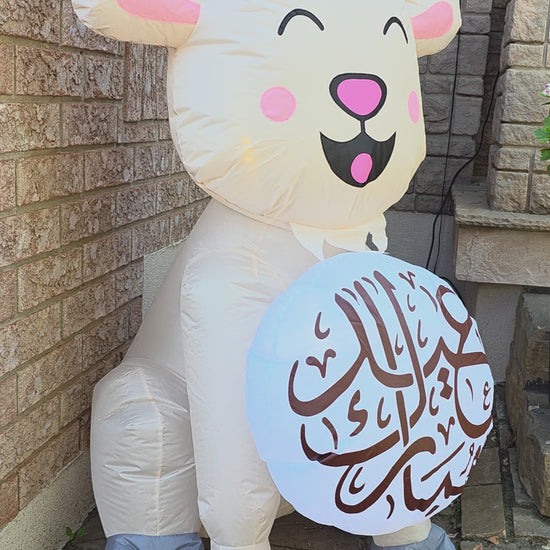 Premium Eid Outdoor Decoration: Create a warm and welcoming atmosphere with this charming inflatable goat, inspired by traditional Eid celebrations. 4 Feet tall.